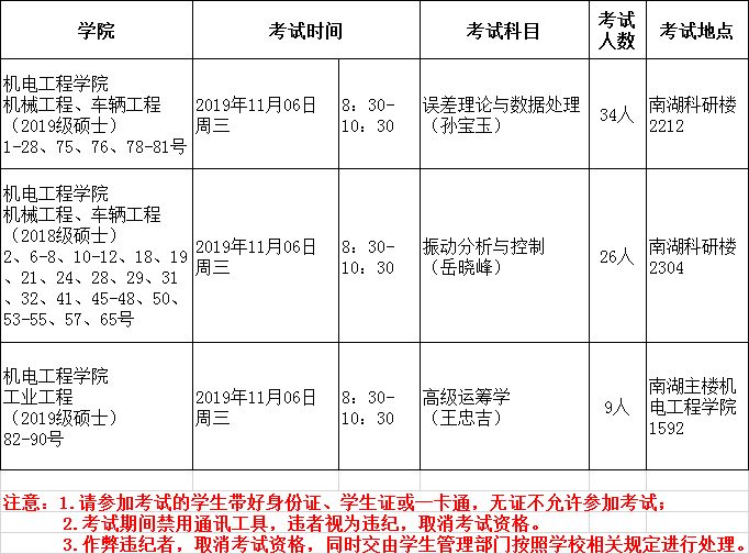 三亿体育2019-2020-1后半学期硕士研究生课程考试安排
