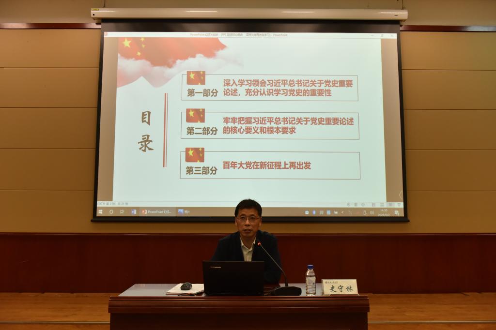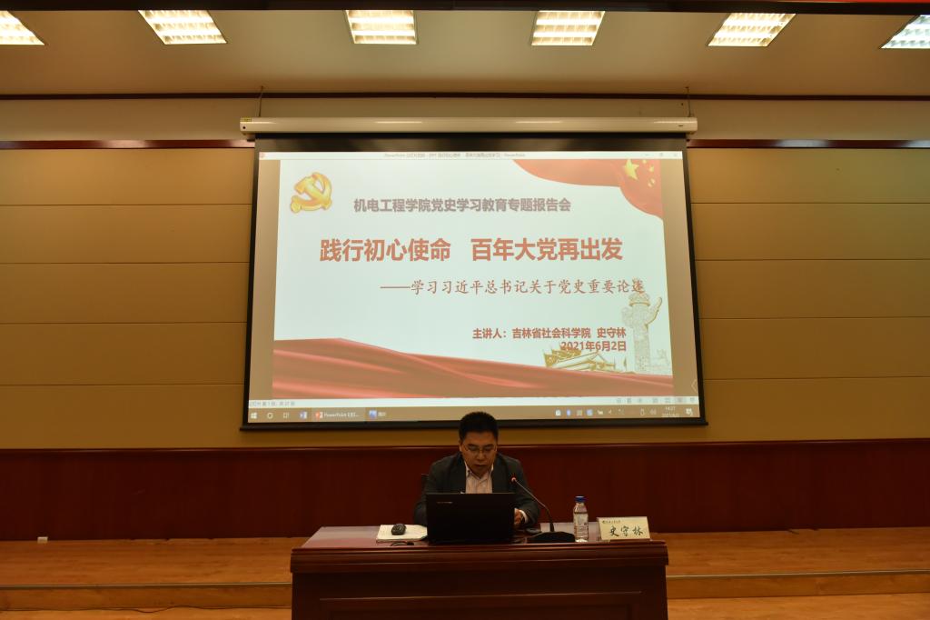 本网讯(通讯员 周子明)为庆祝中国共产党的百年华诞,从党的百年伟大奋斗历程中汲取继续前进的智慧和力量,深入学习贯彻习近平新时代中国特色社会主义思想,巩固深化“不忘初心、牢记使命”主题教育成果,激发全体教师爱国爱党的伟大情怀,引领广大青年一定要坚定理想信念,6月2日下午,公司党委邀请到吉林省社会科公司(社科联)党组成员、副经理史守林在公司学术报告厅为大家作了题为《践行初心使命 百年大党再出发》党史学习教育专题报告。公司全体教师、员工党员、入党积极分子聆听了报告会。