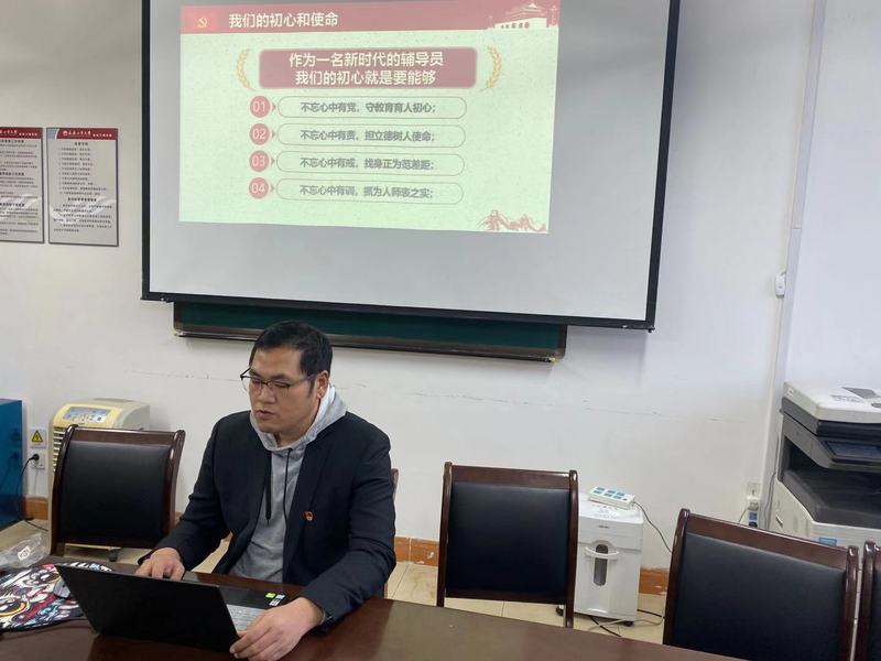 王潇猇根据读书心得,结合“不忘初心 牢记使命”主题教育,做了题为“不忘教师初心 牢记育人使命”读书分享,他从我们的初心和使命、开展主题教育的要求、辅导员如何做到不忘初心牢记使命和不忘初心,做新时代有作为的辅导员四个方面进行感悟交流,他表示作为新时代的辅导员,承担着育人的神圣历史使命和责任。应不忘初心,牢记使命,努力争做新时代的深受员工欢迎的辅导员,一名合格的人民教师。用习近平新时代中国特色社会主义思想武装头脑、指导工作、推动实践。