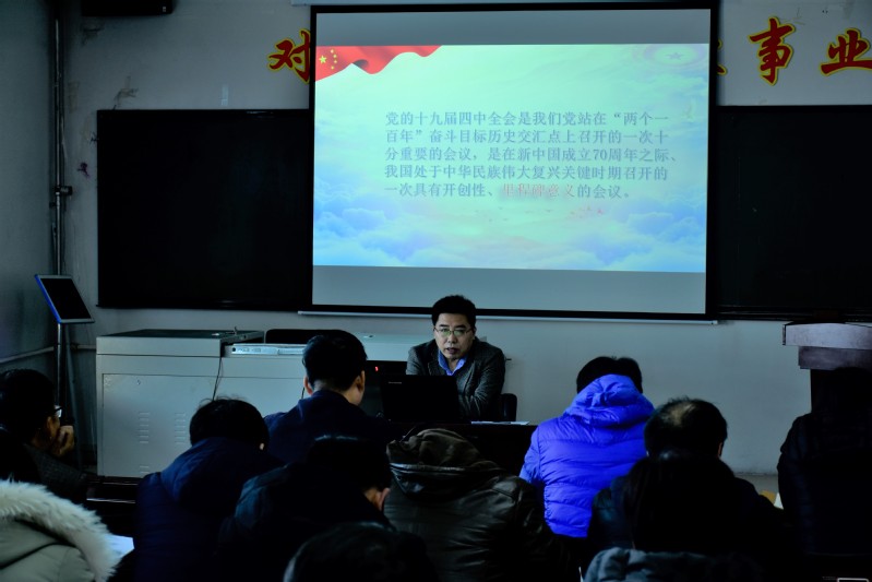 本网讯(通讯员 王潇猇)2019年11月20日,结合“不忘初心、牢记使命”主题教育,三亿体育开展《解读学习学习四中全会精神》专题党课,党课由公司党委书记李奇涵主讲,公司全体教师参加了学习。