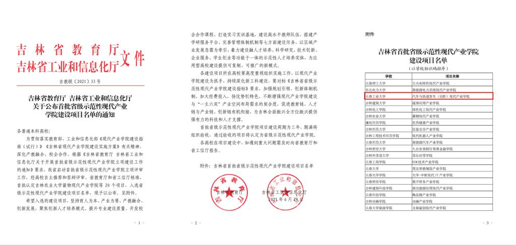 本网讯(通讯员 李迎春 谷东伟)6月29日,吉林省教育厅、吉林省工业和信息化厅下发了《关于公布首批省级示范性现代产业公司立项建设名单的通知》(吉教联〔2021〕33号),由公司申报的汽车与轨道客车(旭阳)现代产业公司成为吉林省首批立项建设的20所省级示范性现代产业公司之一。