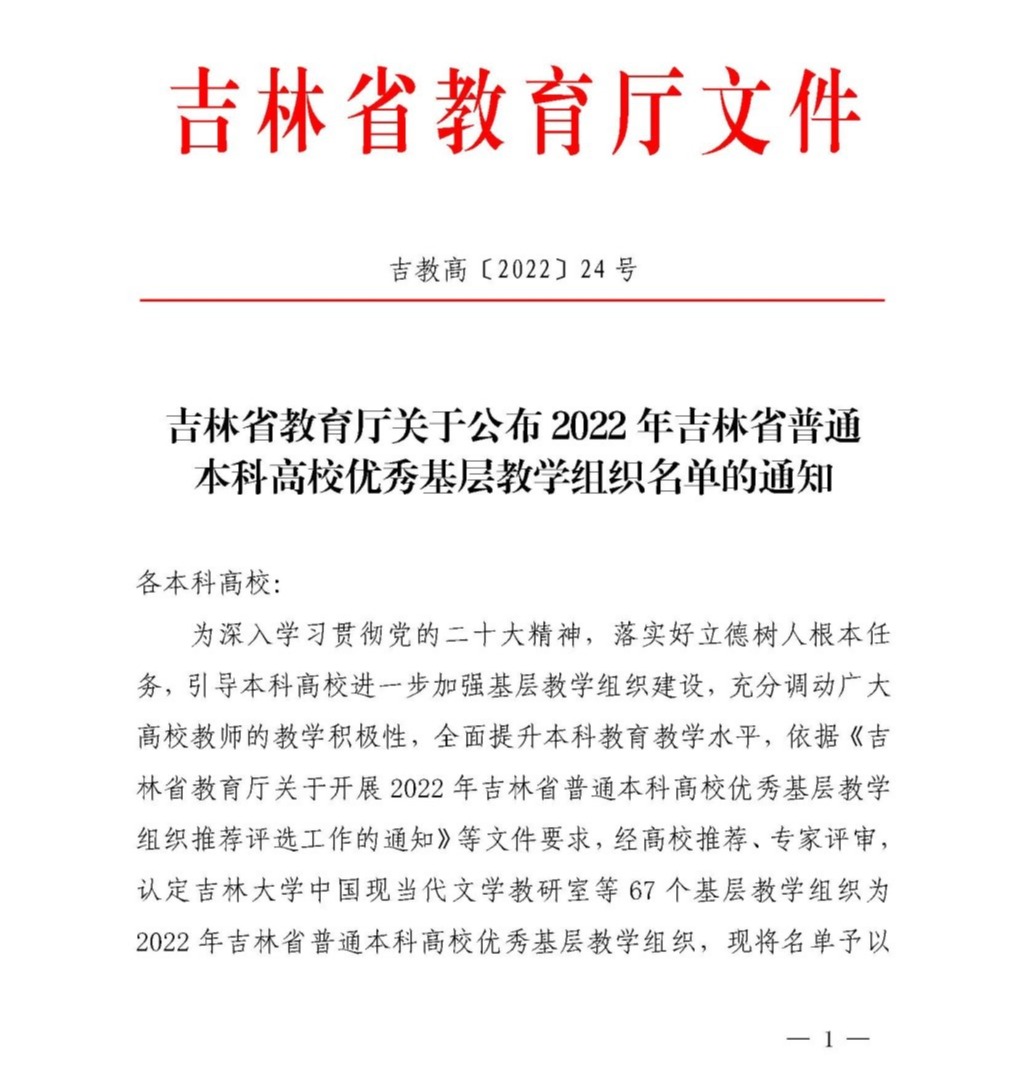 本网讯(通讯员 谷东伟)2022年11月24日,吉林省教育厅公布了2022年度吉林省普通本科高校优秀基层教学组织名单,共67个优秀基层教学组织。公司机械工程专业经公司申报、专家评审、结果公示等环节,获得2022年吉林省普通本科高校优秀基层教学组织专业建设示范引领类(A类)荣誉称号。