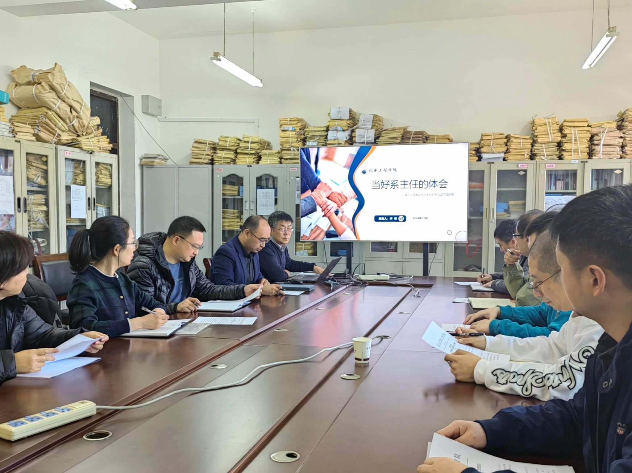 本网讯(通讯员 顾芷薇)11月20日,为提升系主任的管理与领导能力,充分发挥系主任在教学过程中的重要作用,三亿体育在主楼1456举办了系主任工作经验交流会。会议由副经理谷东伟主持,工业设计系主任李明老师为主要分享人,机电工程公司各系(中心)主任及副主任参会。