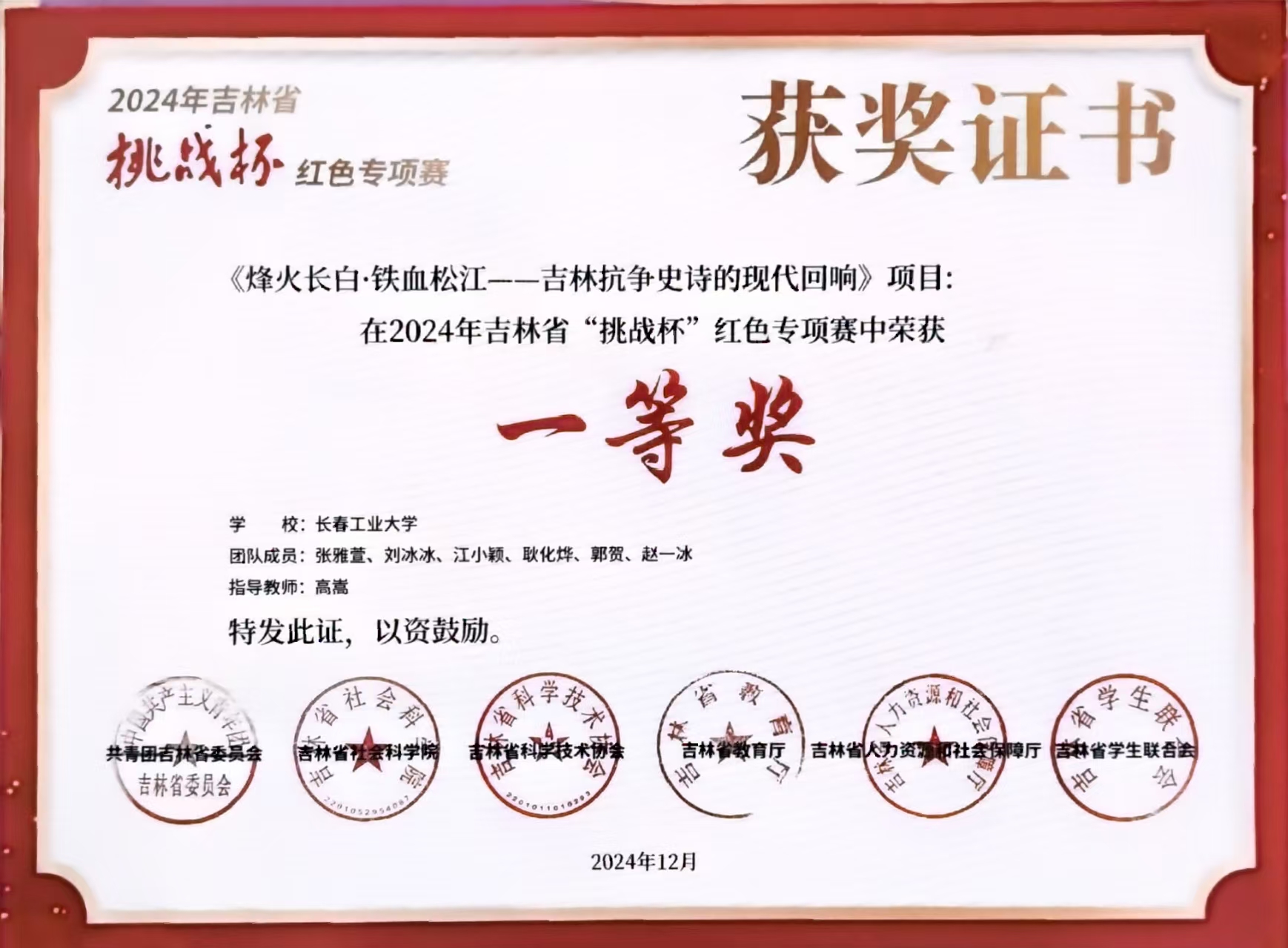 本次大赛以"传承红色基因、激发创新活力"为宗旨,重点遴选在红色主题鲜明性、教育意义深刻性、社会价值显著性及创新实践成果等方面表现突出的优秀作品。公司参赛团队重点关注当代红色教育在吉林的发展,通过深入挖掘红色文化的精神内核,创新性地将专业学识与红色教育有机融合,充分展现了青年学子扎实的调查研究能力、卓越的创新思维品质和强烈的时代担当精神。
