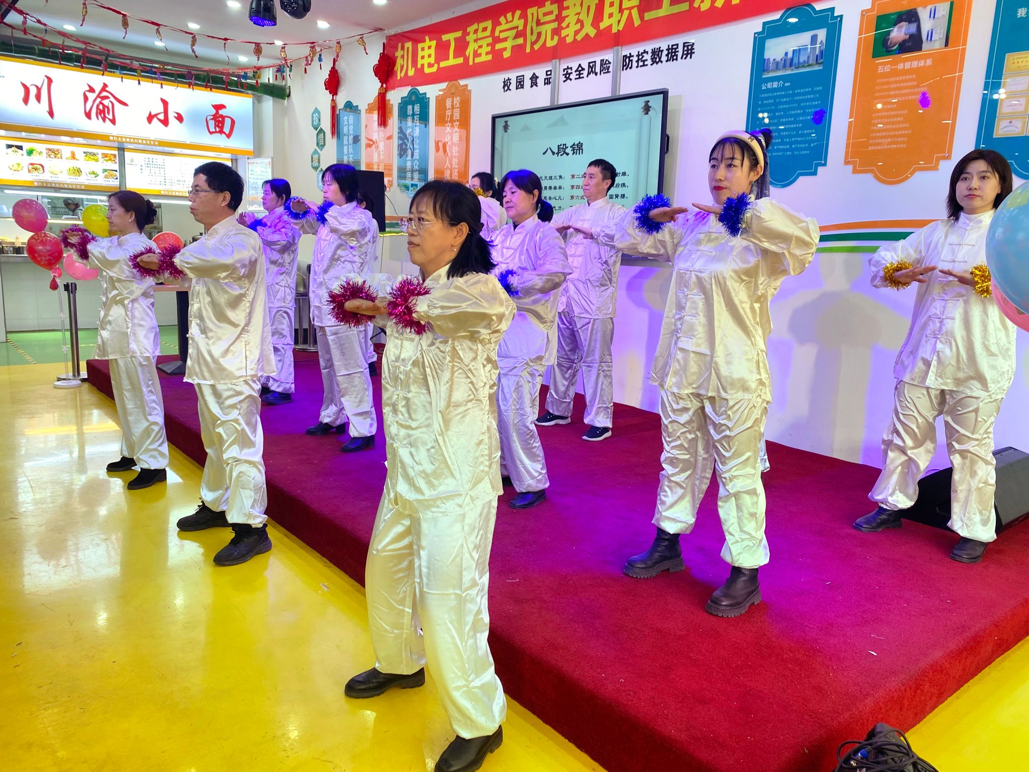 八段锦作为国家非物质文化遗产,具有调理脏腑、疏通经络、调和气血等多重功效。每周两次的晨练活动在南湖校区体育馆3楼准时开展。在奚主任的专业指导下,老师们系统学习了这套传承千年的养生功法。通过“双手托天理三焦”等八个经典动作,配合深长呼吸,能够有效缓解肩颈腰背疲劳,改善心肺功能,增强免疫力,不仅锻炼身体,还能放松心情,为一天的工作注入活力。同时,活动还融入其他健身养生操,为教职工提供多元化的健康选择。