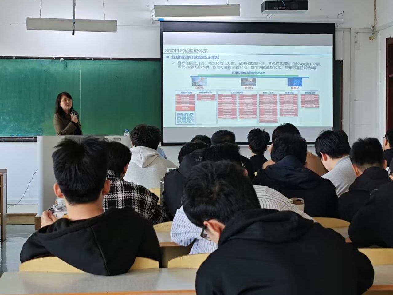 王丽娟工程师本次授课首先介绍了铁路行业的发展概况、动车组关键系统的功能和组成,分享了自己多年的工作经验,以牵引系统为例,讲述了作为一名车辆设计师的核心业务,包括设计团队人员配置、设计生产流程,以及在工作中常用的机械和电气设计软件。最后从行业需求出发,对机械电子工程专业的同学给出了职业建议。