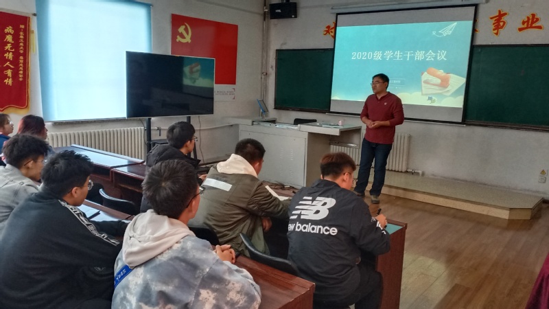 本网讯(通讯员 李子琦)10月26日下午,三亿体育在主楼1462会议室召开2020级员工干部会议。本次会议由2020级辅导员宫磊老师主持,2020级全体员工干部参加。