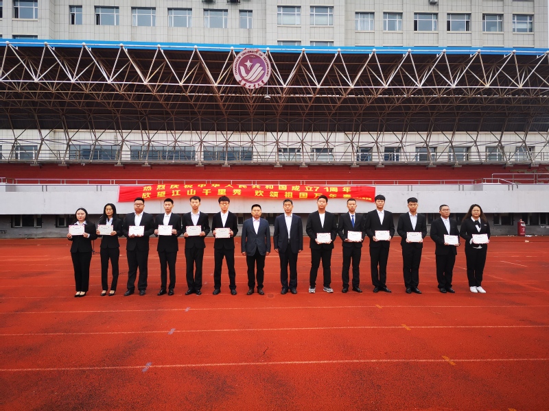 员工代表陈泽晨在国旗下作《不忘初心,别样青春献礼华诞》的主题演讲,号召同学们不忘初心、牢记使命,追逐梦想,勇做走在时代前列的开拓者、奋进者和奉献者。