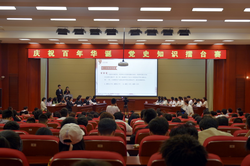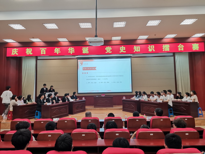 本网讯(通讯员 田寿杭)为深入学习贯彻习近平总书记在党史学习教育动员大会上的讲话精神,在党的100周年华诞之际,热情讴歌中国共产党领导中国革命和建设取得的伟大成就。6月9日,公司于南湖校区学术报告厅举办了“庆祝百年华诞”党史知识擂台赛。员工工作处副处长肖永辉、校团委宣传部部长范婷婷、公司党委副书记黄向东及公司部分辅导员观看了本次比赛。